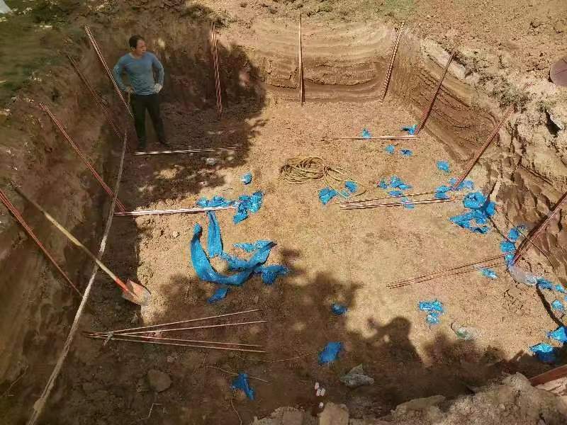 2022年涿州某部隊1歐姆機房防雷接地施工現場記錄,選址,開挖,測量深度,焊接,防銹處理,測量接地電阻,回填灑水。