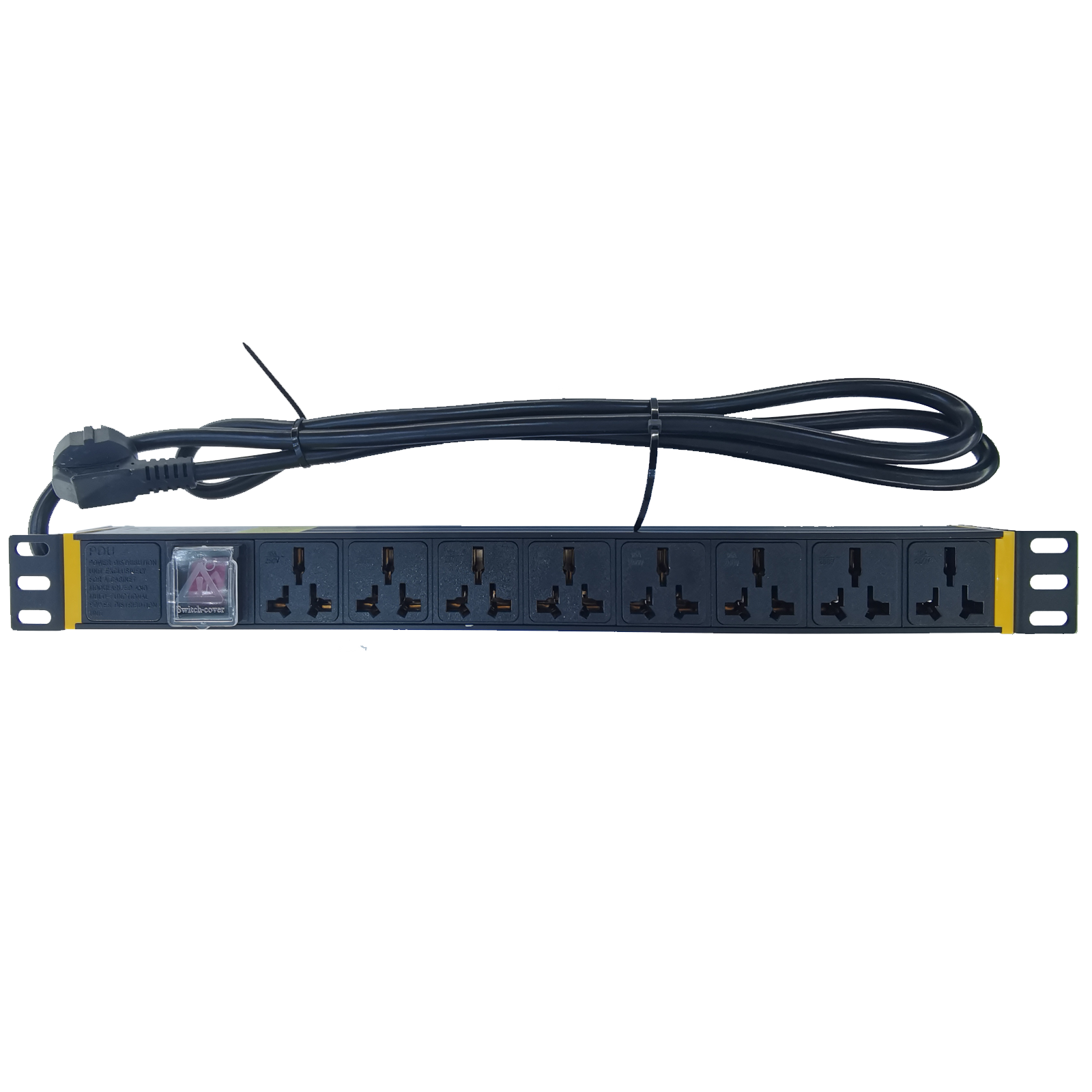 產品參數:額定電流10A,工作電壓220V,1U8位10A新國標,1.5平方電源線2米10A國標插頭,產品系列:新國標系列,插座制式:GB/T1002-2008(10A)新國標標準輸出,輸出單元:8位10A新國標,供電輸入方式:左端輸入,安裝支架方式:水平安裝,電纜線插頭:GB1002(10A)國標插頭,保護監測功能:單燈防雷,外殼顏色:黑色,電纜線規格:3*1.5平方電源線2米(可選3米),產品尺寸規格:長×寬×高= 483×44.5 X44.5 mm,固定孔中心距:460mm,外殼長度:427m m,PDU指數:1U,出廠配件:安裝螺絲包,合格證,說明書,額定電壓:250VAC 50/60Hz,額定電流:10A,最大功率:2500W,安規認證:CCC,模塊面板:PC/ABS防火阻燃,外殼:鋁合金,內部結構:磷銅,電源線:有3C認證國標線。帶獨立等電位接地線、產品特點:高效突波吸收,阻燃抗沖擊,過載保護,多用插孔設計。使用范圍:各種機房機架式電源配套安裝。安裝方便,可直接安裝于各種機柜內,美觀、安全、可靠。標準IU面板,19英寸。